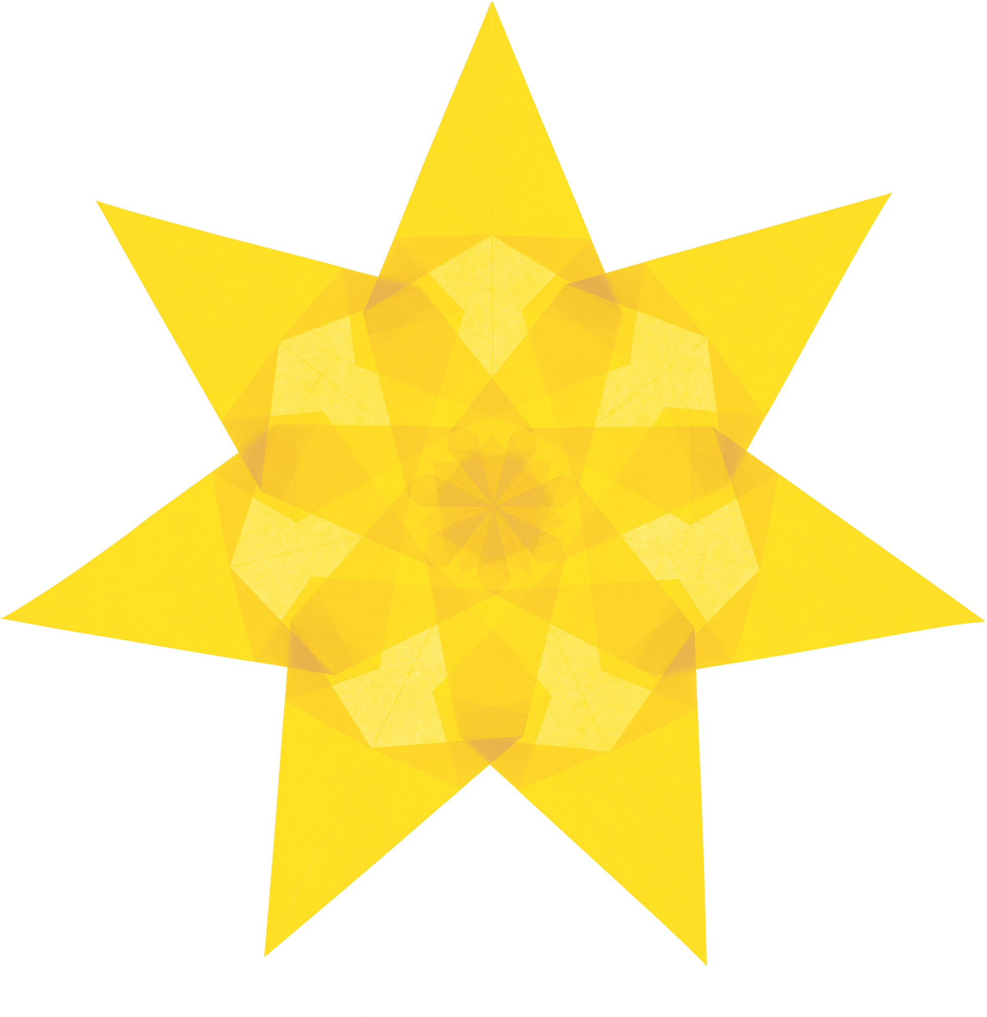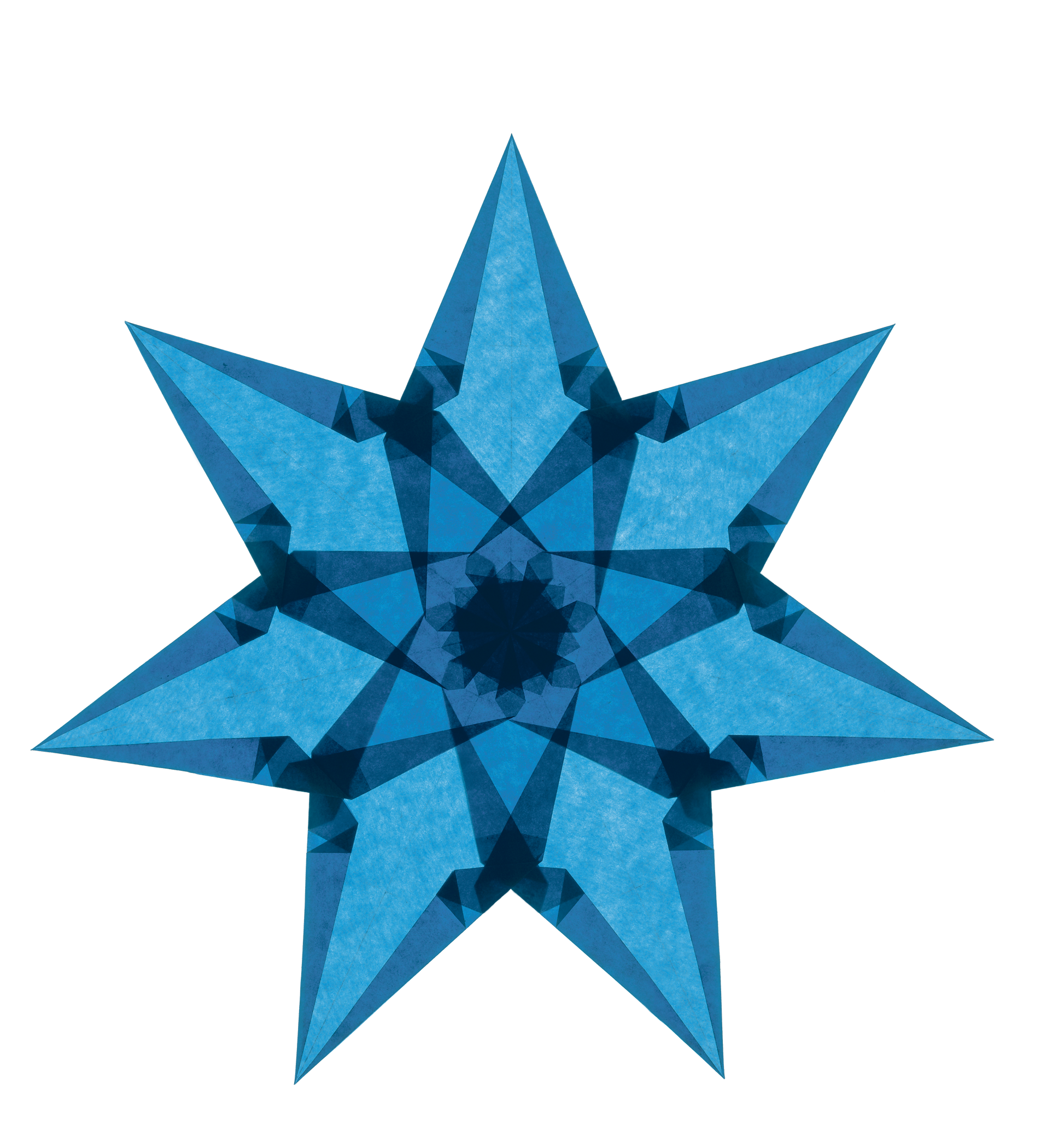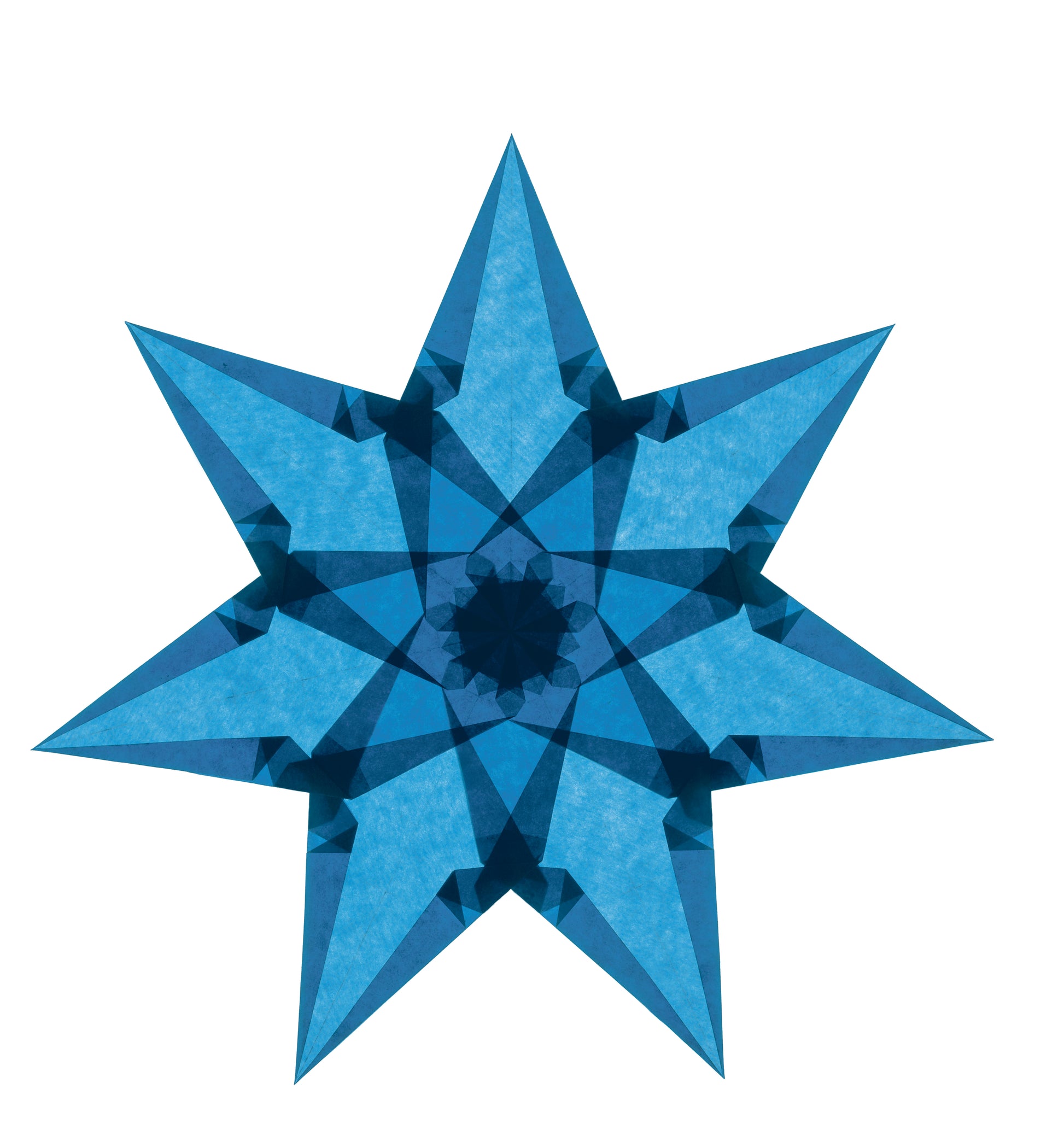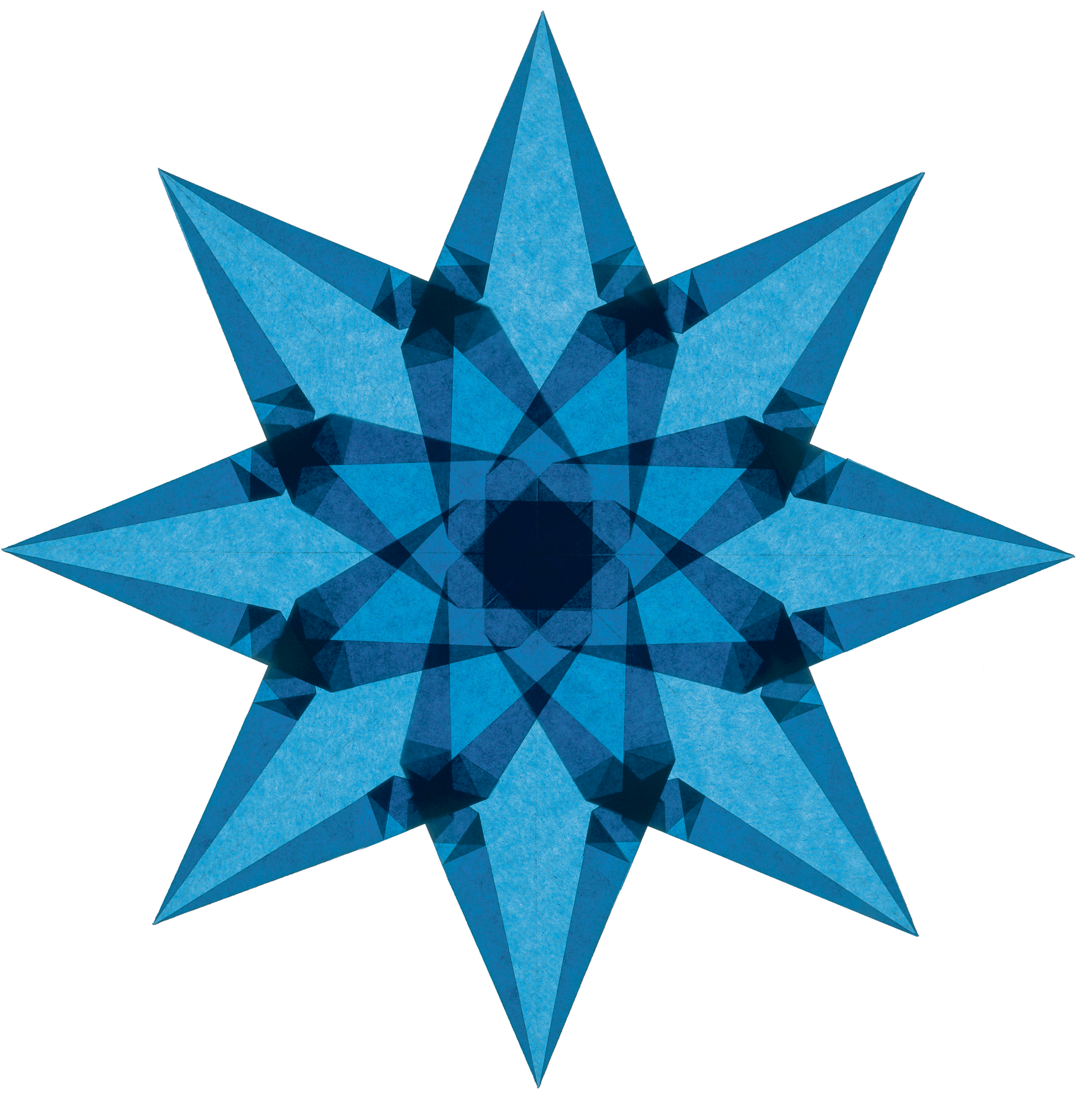 Zwei Schablonen ermöglichen das exakte Zusammenfügen der Strahlen zu Sieben- oder Achtsternen.