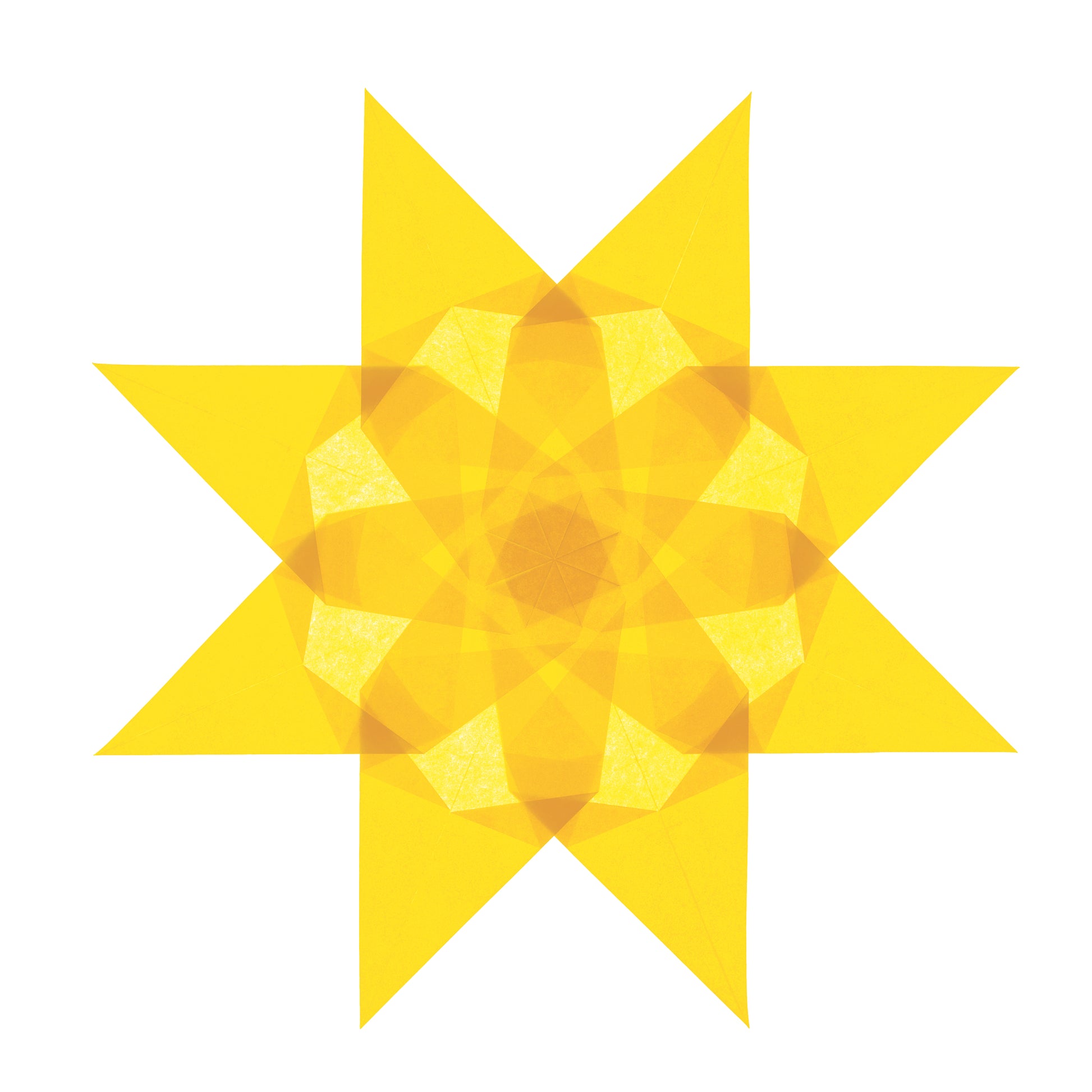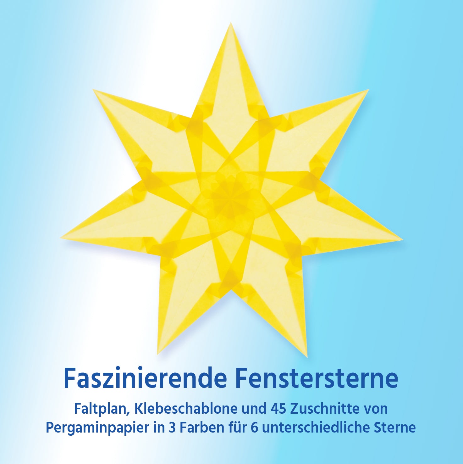 Das Komplett-Set enthält 45 Blatt exakt zugeschnittenes Pergaminpapier für sechs leuchtende Fenstersterne von etwa 20 cm Durchmesser.