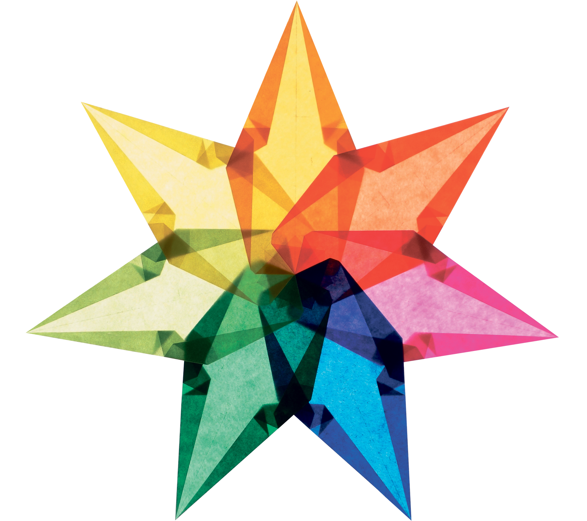 Zwei Schablonen ermöglichen das exakte Zusammenfügen der Strahlen zu Sieben- oder Achtsternen.