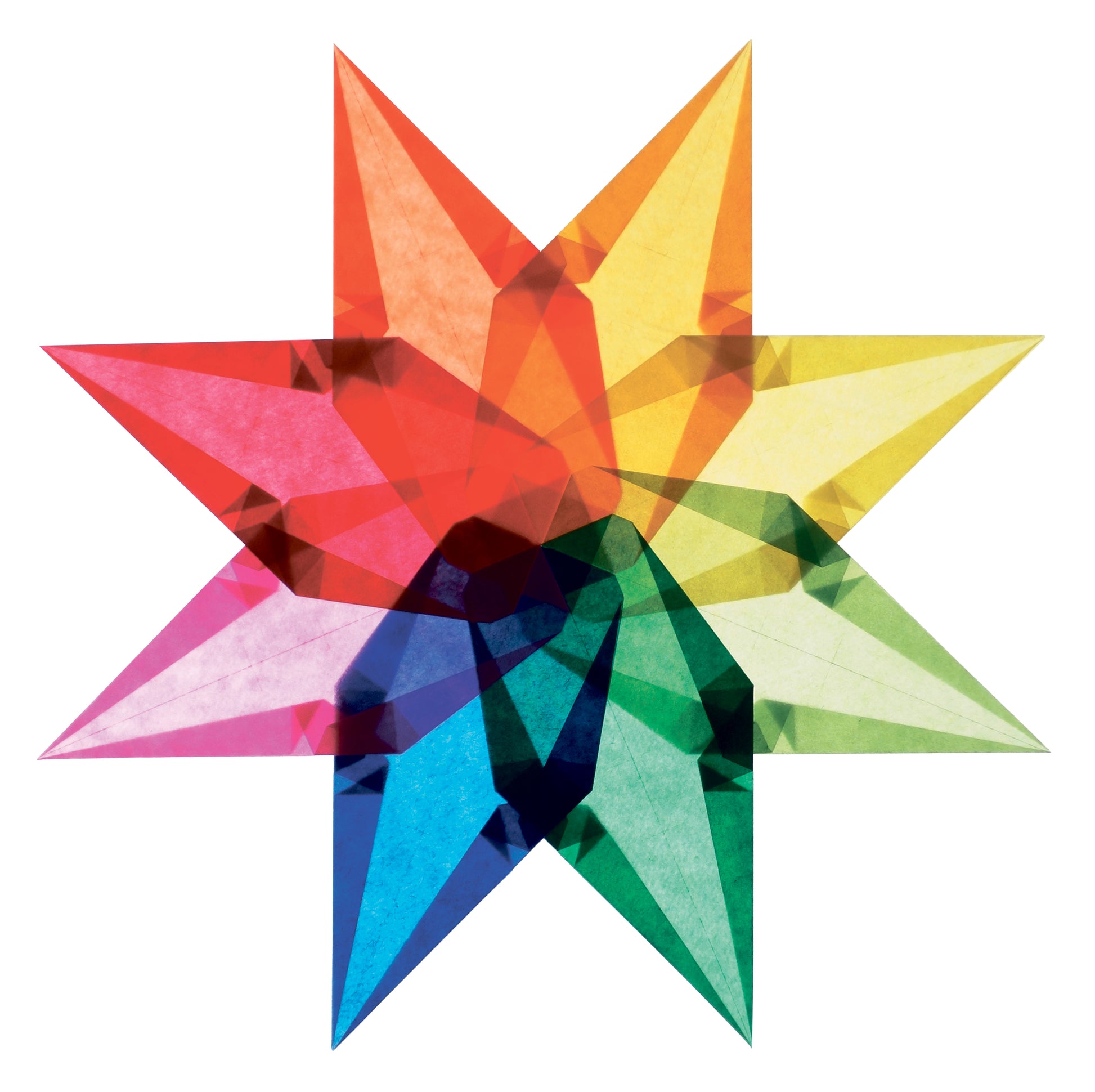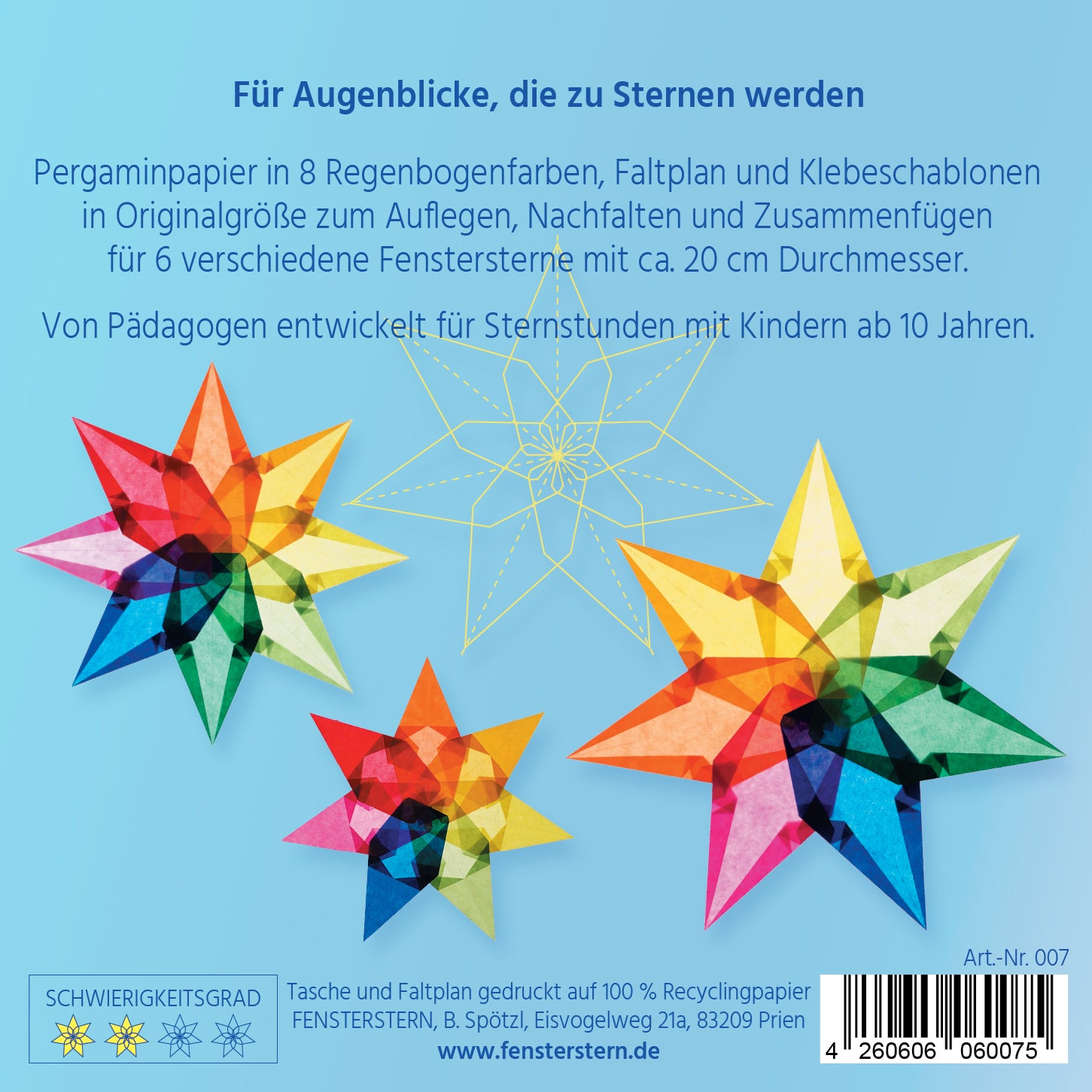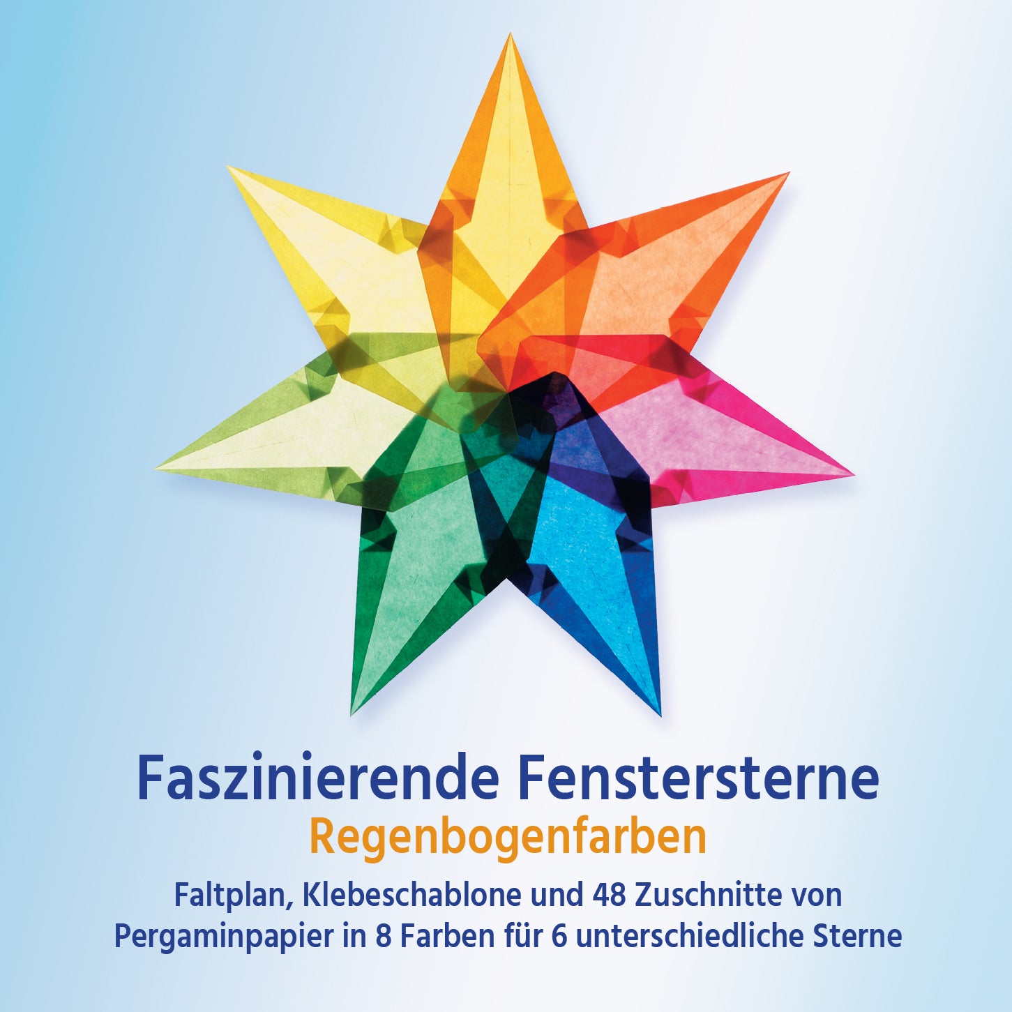 Das Komplett-Set enthält 45 Blatt exakt zugeschnittenes Pergaminpapier für sechs leuchtende Fenstersterne von etwa 20 cm Durchmesser.