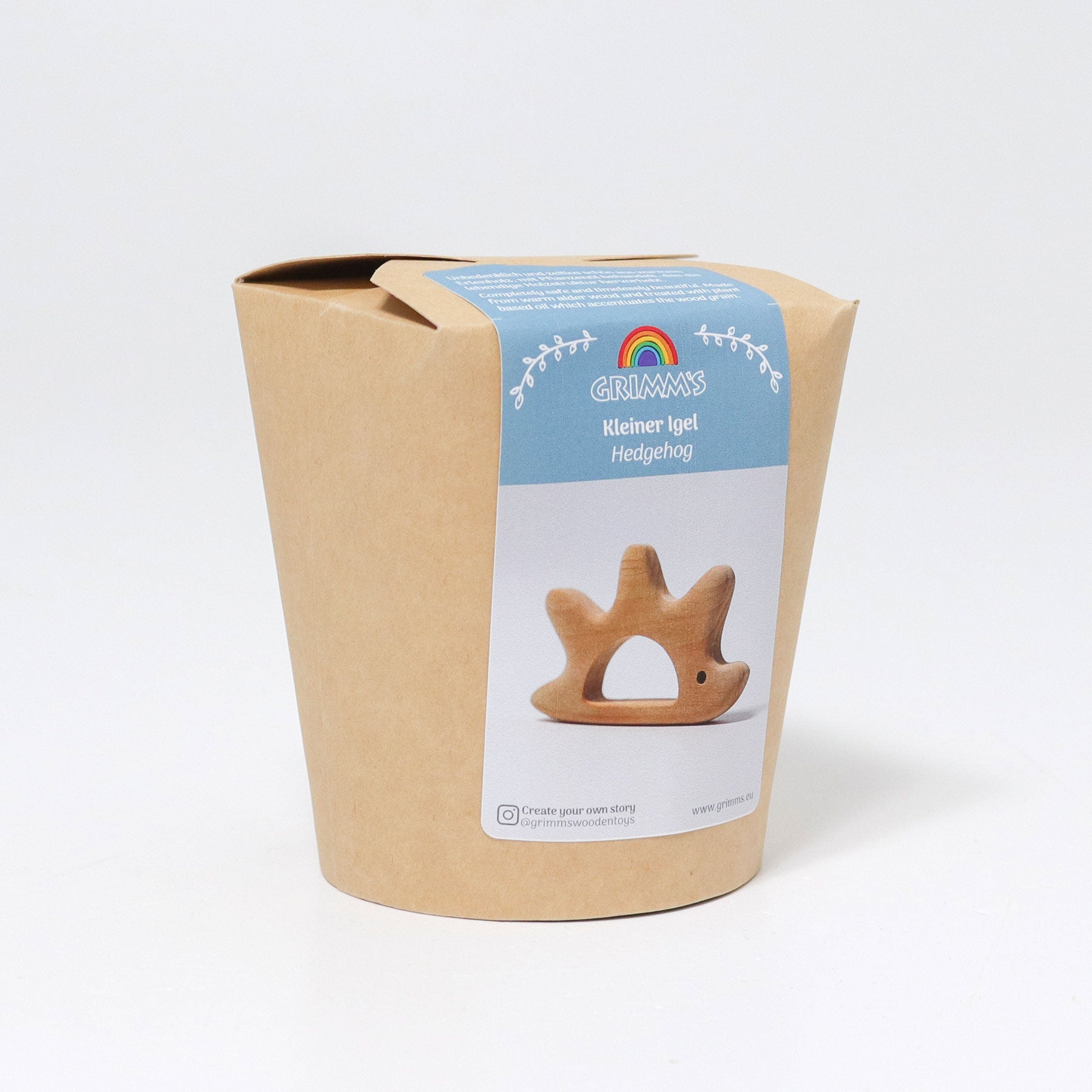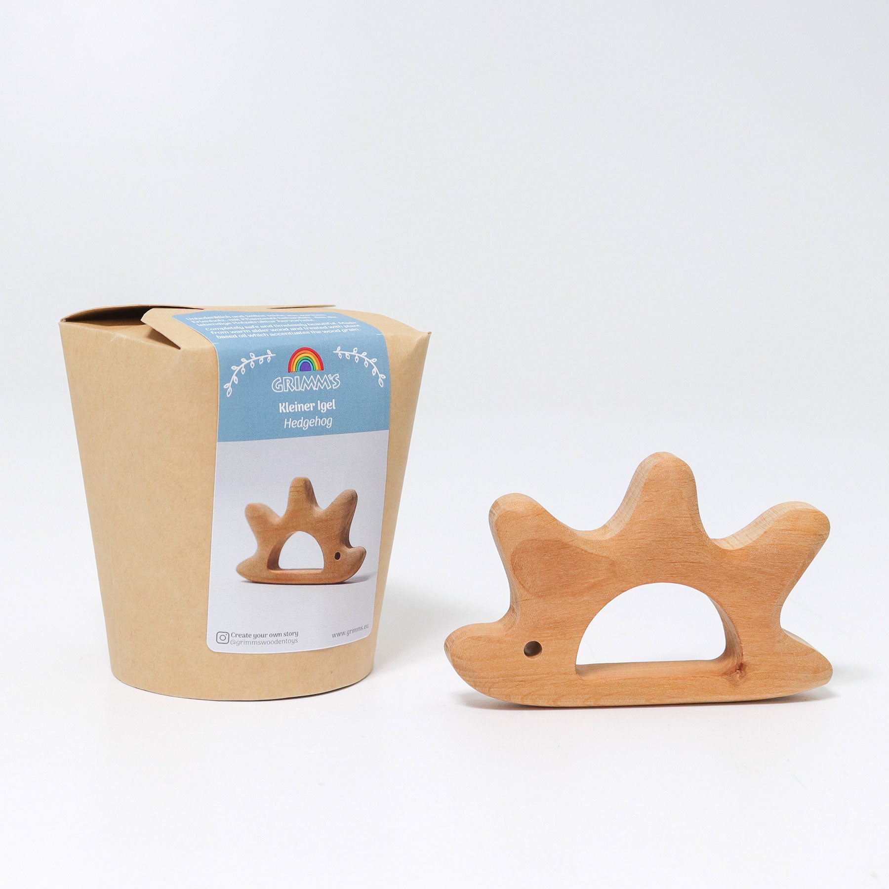 Greifling oder Beißring in Form eines Igels. Dieser Greifling eignet sich auch um ein Seidentuch daran zu knoten, für die Kleinen einfach um die Haptik zu erkunden, oder für die Großen um das Tuch zu Schwingen und Fliegen zu lassen. Das verwendete Erlenholz gibt unseren Rasseln und Greiflingen seine besondere und bei jedem Stück einzigartige Struktur. Ein natürliches Pflanzenöl schützt das Holz und bringt seine lebendige Struktur zur vollen Entfaltung. Holz: Erlenholz geölt. Maße: Länge 11cm
