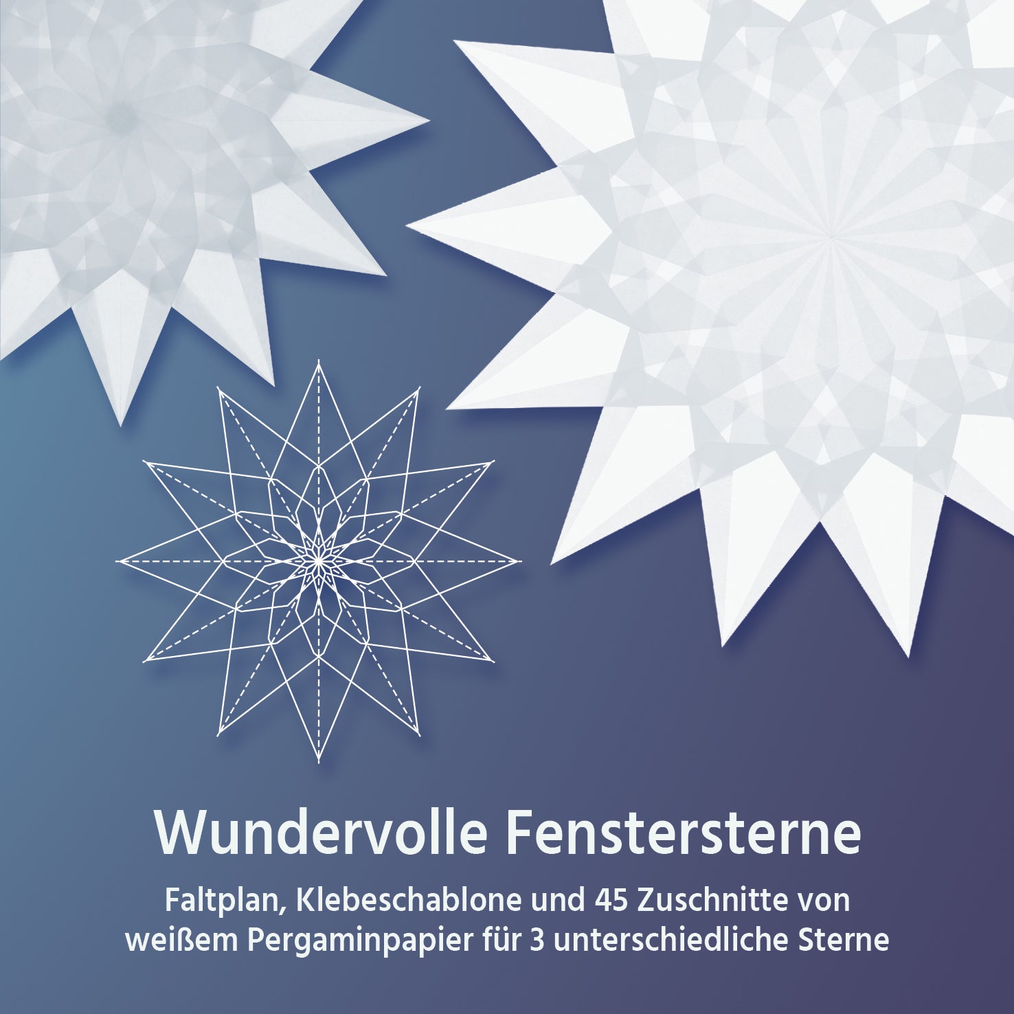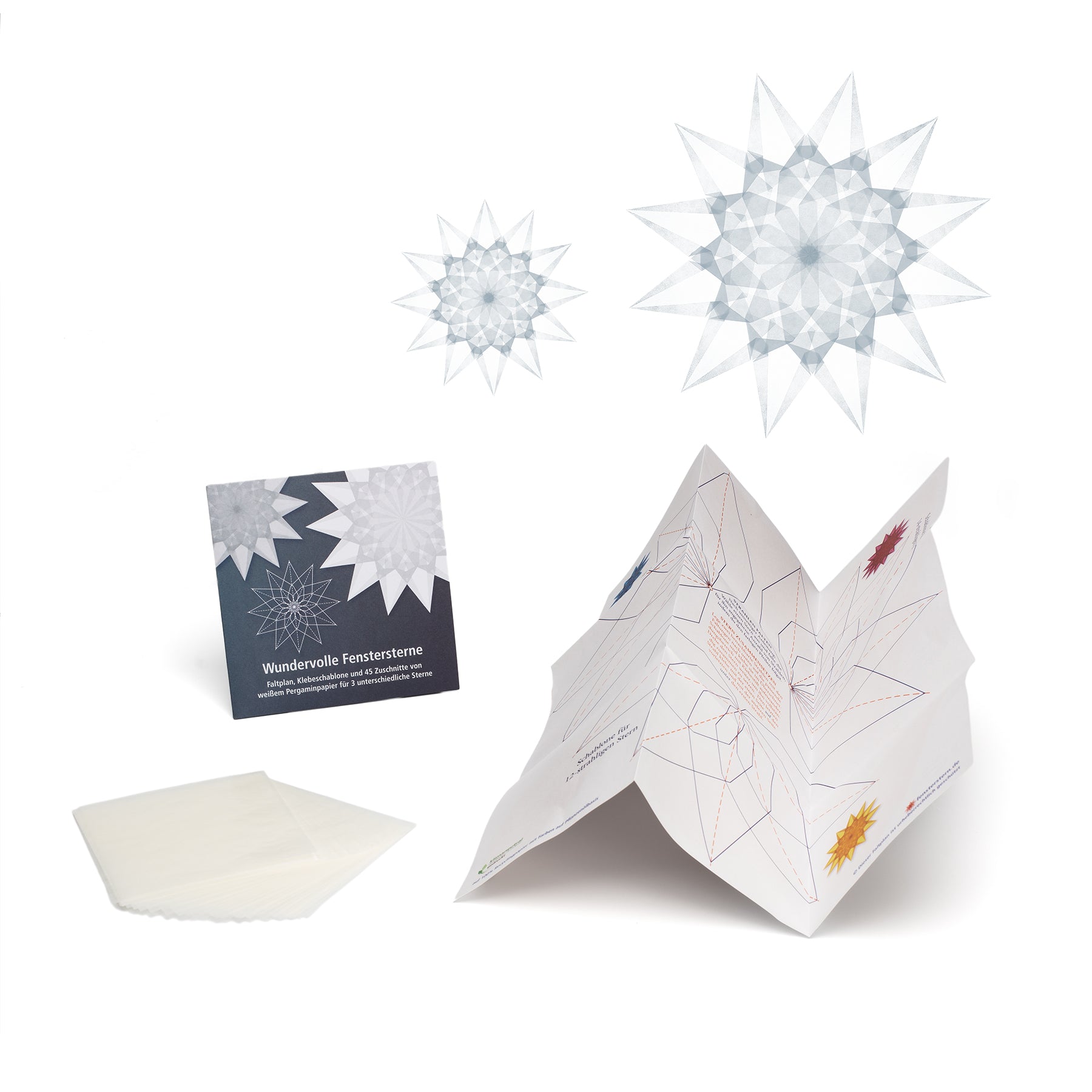 Mit den 45 Blatt Pergaminpapier lassen sich drei Sterne mit Hilfe der drei Schablonen zusammenfügen.